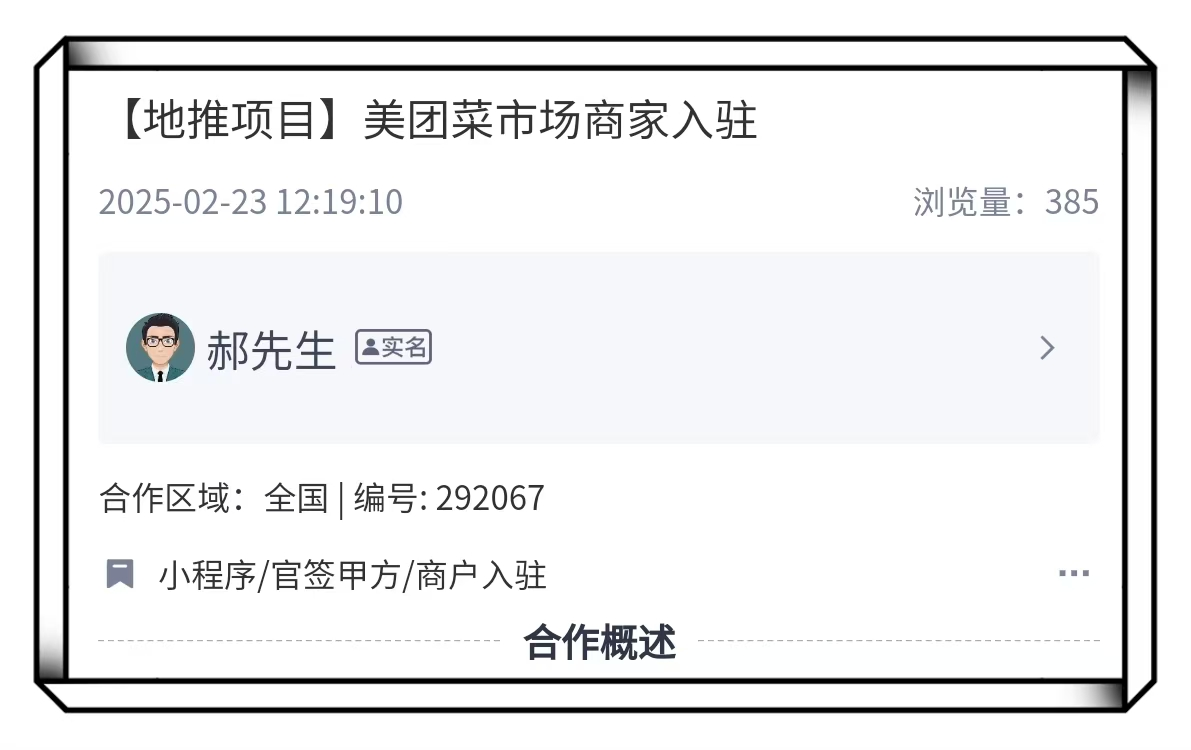 所需资源:现在项目方正在大力寻找拥有菜市场资源的地推个人/团队。