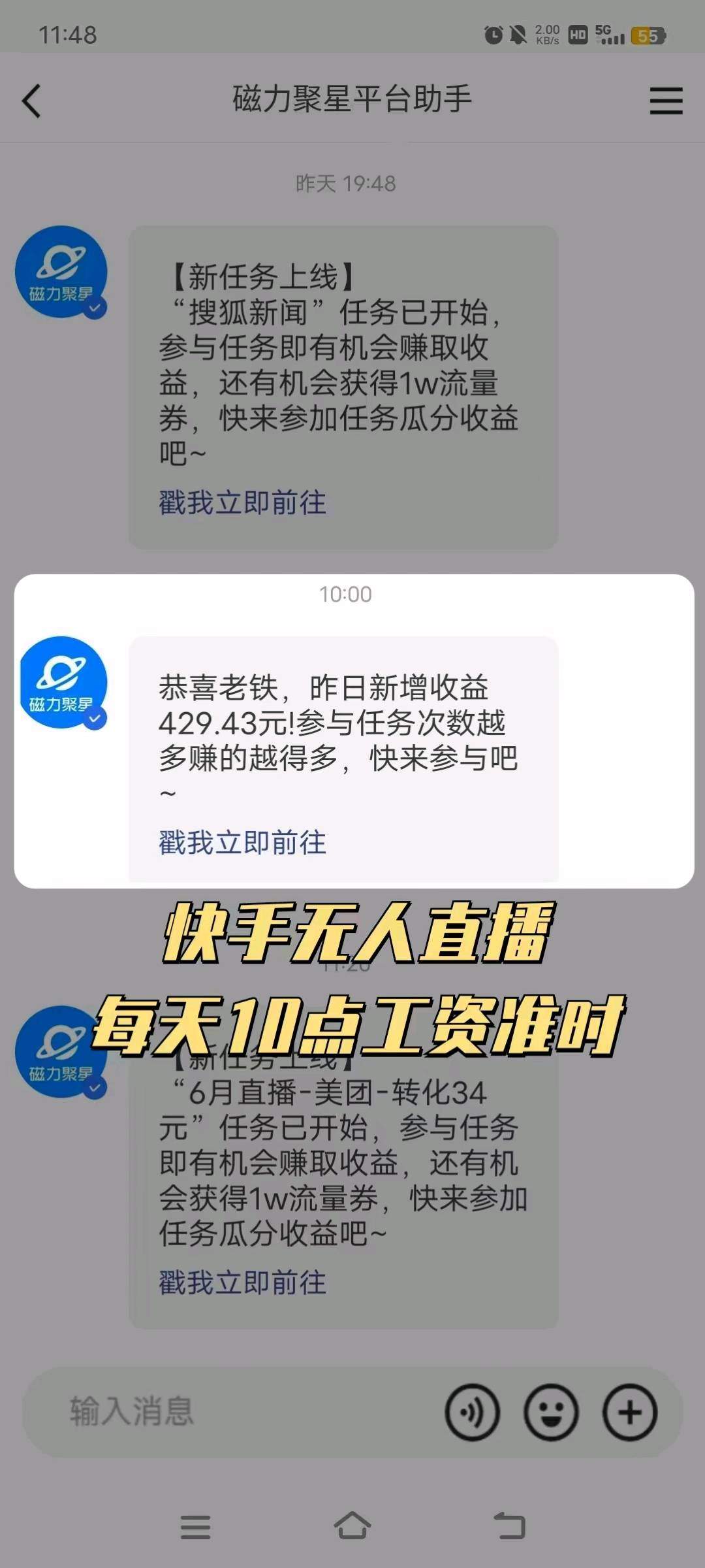 通过我们交付的无人技术,实现了24小时无人播剧,不用露脸,不用出镜,通过播剧挂磁力聚星任务,获取收益