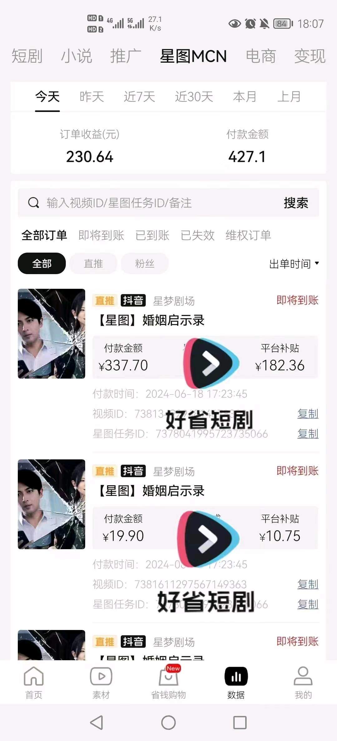 目前加入的伙伴三天都已经获得了收益,只要按照我们的方法,傻瓜式操作可以了,过程中遇到任何问题,我们都可以提供帮助,遇到好的项目和团队,你已经成功了一半,抓住2024年短剧风口,这个项目目前外面都是收费,我们免费教。